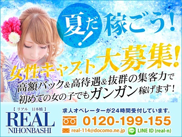 | 応募方法 | 気になる質問だけでも結構です!お気軽にご連絡ください★ LINEでの応募も可能です ID: real-n あなたからのご連絡お待ちしております! ◎電話で応募・相談する時は「ジュリエを見て」と伝えるとスムーズです! |