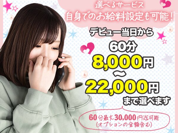 | 勤務日 | 完全自由出勤制で週1日からの勤務でOKです☆出勤はお客様用HPにて「出勤情報」を更新していますので、週に1回は翌週のシフトを提出してもらいます。県外からの月に1度の出勤も大歓迎ですよ! |